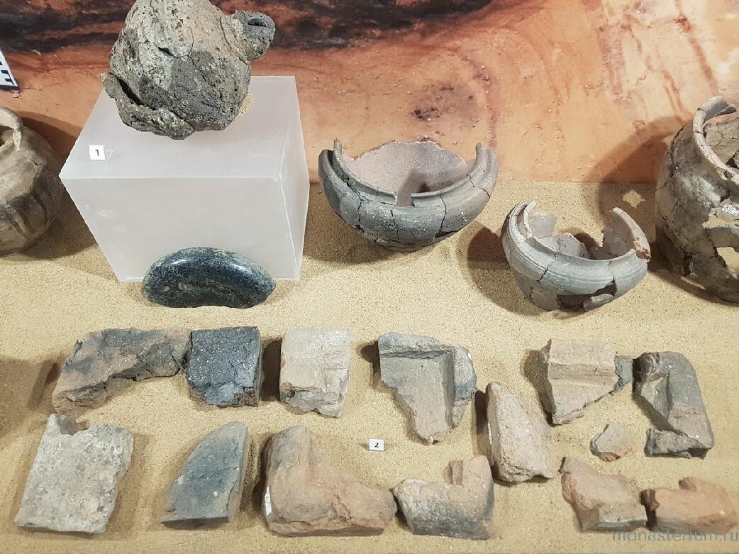 – Это – келия XV века, – опережает мой вопрос матушка. – В таком виде она была обнаружена при раскопках. Хотя, конечно, это чудо. Ведь от самого первого деревянного храма практически ничего не осталось. Пожары, набеги татар, да и просто влияние времени. Как-никак, миновало шесть с половиной веков. К той же эпохе относятся и сосуды, которые Вы видите. Одни для воды, другие – для масла, вина, елея. А вот этот оплавленный в огне керамический сосуд с толстыми стенками и узким горлышком служил для хранения благовоний. До нашей находки таких сосудов в Москве было обнаружено всего два – при раскопках в Кремле.