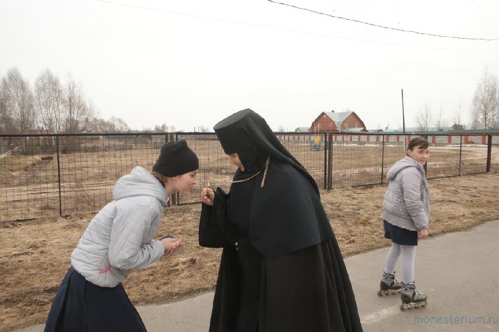 С большой теплотой и, смею утверждать, с каким-то внутренним восторгом рассказывала Елена, как ее дети вместе с другими ребятишками под руководством инокини Параскевы участвовали в росписи Никольского храма. Причем старшие даже под куполом центрального престола в честь Вознесения Господня трудились! Так вместе, сообща, сестры и миряне, готовили храм к масштабному торжественному событию, состоявшемуся недавно, 7 мая. Хочется добавить, что иерей Владимир Постников в этот день был удостоен возведения в сан протоиерея. Именно отца Владимира, по словам сестер, можно считать первым «монастырским» переселенцем. Он переехал сюда из столицы с матушкой Надеждой в самом начале, и на его глазах, с его участием происходило зарождение монашеской общины, ее становление и преобразование в монастырь. Ставропигиальный.