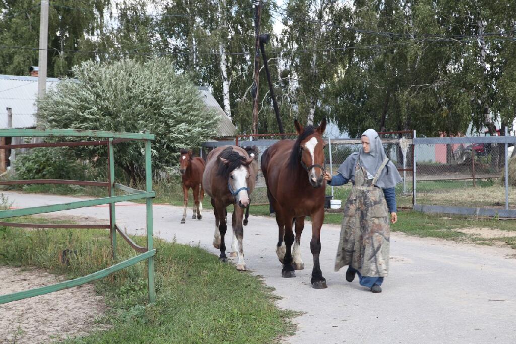 Одна из граней жизни монастыря – «монастырские» переселенцы. Кто такие переселенцы, понятно. А что значит – «монастырские»? Выяснилось: это люди, переехавшие в российскую глубинку с целью быть поближе к обители. Они покупают или строят здесь дома, трудятся, рожают детей, семьями ходят на службы в Никольский монастырский храм, что находится в селе. Между ними и монастырем устанавливается прочная духовная связь, которая настраивает на молитву и полное доверие Богу, помогая в этой временной, земной жизни подготовиться к жизни вечной. Возвращаясь после вечерней службы по ровной сельской дороге в обитель, матушка-настоятельница с матерью-благочинной стали по памяти называть переселенцев: Тарасовы, Орловы, Перовы, Вера Никитична, Надежда Александровна, Надежда Ивановна... Называли фамилии или имена отчества. Многие перебирались сюда по благословению отца Петра. Немало среди них москвичей.