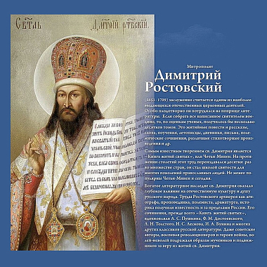 Лекционный курс, подготовленный для выставки, включал в себя 22 темы по истории и культуре эпохи митрополита Димитрия Ростовского. Лекции читали специалисты в области русской культуры и отечественной истории XVII–XVIII веков: Алексей Крылов, кандидат исторических наук, преподаватель истории в МГТУ им. Баумана, старший научный сотрудник Научного центра истории богословия и богословского образования при ПСТГУ; Олег Крылов, директор Исторического театра «Старинный фейерверк» г. Москвы; Светлана Яворская, художник, искусствовед, специалист в области иеротопии; руководитель проекта Мария Рубцова и кандидат исторических наук Алла Виденеева.