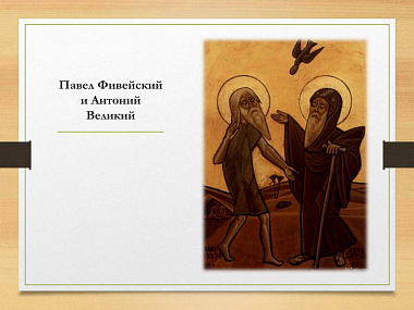 Одним из первых таких «монахов до монашества», наверное, является святой Павел Фивейский. Мы его считаем даже неким первым монахом, но он не был первым исторически. Скорее, одним из первых, о ком мы встречаем соответствующее описание, житие, которое подобно житию всех других монахов. В житии Павла Фивейского, написанном блаженным Иеронимом, мы видим трогательную встречу: уже достигший преклонных лет Антоний Великий идет через пустыню, по откровению свыше, чтобы встретиться с почти что 136-летним Павлом, который жил вдали от мира. По блаженному Иерониму, он более полувека прожил в одиночестве и даже спрашивал Антония: что там, в миру, происходит. «Расскажи мне, пожалуйста, как живет теперь род человеческий? – спрашивал святой Павел. – Возвышаются ли в старых городах новые крыши, какой властью управляется мир? И остался ли кто-либо увлеченный прелестью демона?» [1] Мы видим, что в их присутствии совершается чудо: ворон, который приносит Павлу укрухи хлеба, в тот момент, когда приходит святой Антоний, приносит двойную часть. После смерти святого Павла Фивейского, в память об этом подвижнике святой Антоний сохраняет его милоть.