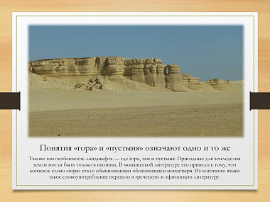Но прежде чем мы перейдем к Пахомию, я хотел бы акцентировать ваше внимание на том, как выглядит пустыня в Египте.