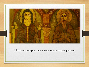 Эта практика молиться с воздетыми горе руками находит свое отражение в иконах, которые сейчас находятся в коптских монастырях…