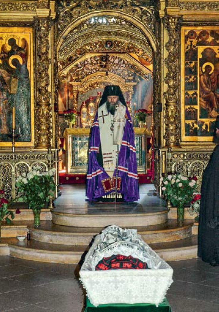 В последнюю ночь отец Михаил почти не спал. «Радуйся, Невесто Неневестная», — очень часто повторял он припев из акафиста как бы в забытьи, в полусне. В 9:00 обычно начинали келейное правило, но в этот день батюшку не стали будить, потому что он только заснул. Проснувшись около 11:00 и узнав, который час, старец немного осерчал: нужно было все равно будить и молитву начинать в свое время — правило должно исполняться вовремя, и телесные немощи не причина его откладывать. Причастившись Святых Христовых Таин, старец как будто мирно уснул и при завершении канона на исход души отошел ко Господу. Как раз начиналось вечернее богослужение. Пока шла служба, отца Михаила облачили в погребальные схимнические одежды. После службы братия из храма пришли в келью, послужили литию и соборно с пением перенесли тело старца в Духовской храм. Чувствовалось не только торжество, но и строгий порядок. Все вписывалось в монастырский уклад.