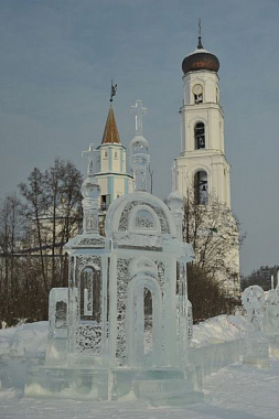 Рассказ о внешней, рукотворной красоте в монастыре будет неполным, если не упомянуть скульптуры, которые можно увидеть и на территории обители, и на подходе к ней. Два скульптора, Владимир Савельев и Анатолий Винокуров, став послушниками Раифы и получив от архимандрита Всеволода благословение на труды по их профессии, сумели придать неповторимость этому месту. Владимира Савельева, заслуженного художника Республики Марий Эл, не стало чуть больше года назад, но его скульптуры – «Святая преподобномученица Елисавета Феодоровна, «Ангел», «Преподобный Серафим Саровский», серия мраморных барельефов «Четыре евангелиста» на стене храма Грузинской иконы Божией Матери (за что он был удостоен Национальной премии в области декоративного искусства «Русская галерея – XXI век») и многие другие продолжают свидетельствовать о таланте умельца, данном Творцом. Анатолий Винокуров, помимо скульптур, делает декоративные фонтаны, каменные цветы и вазы, украшающие монастырскую территорию. И традиционно накануне праздника Крещения Господня он участвует в создании шедевров из льда (ныне первую часть ледового городка – наземную – открыли раньше, 2 января. И тематика в 2020 году – лики святых. Послушник Анатолий создал образ Святителя Николая с посохом).