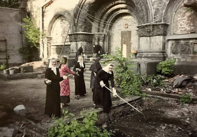 «Не без волнения мы наблюдали, как убирали доски, снимали перекладины, удаляли предохраняющий настил с пола, – рассказывает про окончание реставрационных работ в ныне освященном Патриархом храме насельница обители монахиня Амвросия. – Вспоминалось, каким Воскресенский собор после безбожных десятилетий в начале 90-х годов был передан монашеской общине: только бродячие собаки обреченно заглядывали в эту «мерзость запустения» с торчавшими кусками арматуры и обвалившимися бетонными глыбами – последствиями страшного пожара. И вот теперь, после многих трудов и молитв, бессонных ночей, переживаний и забот – долгожданная минута».