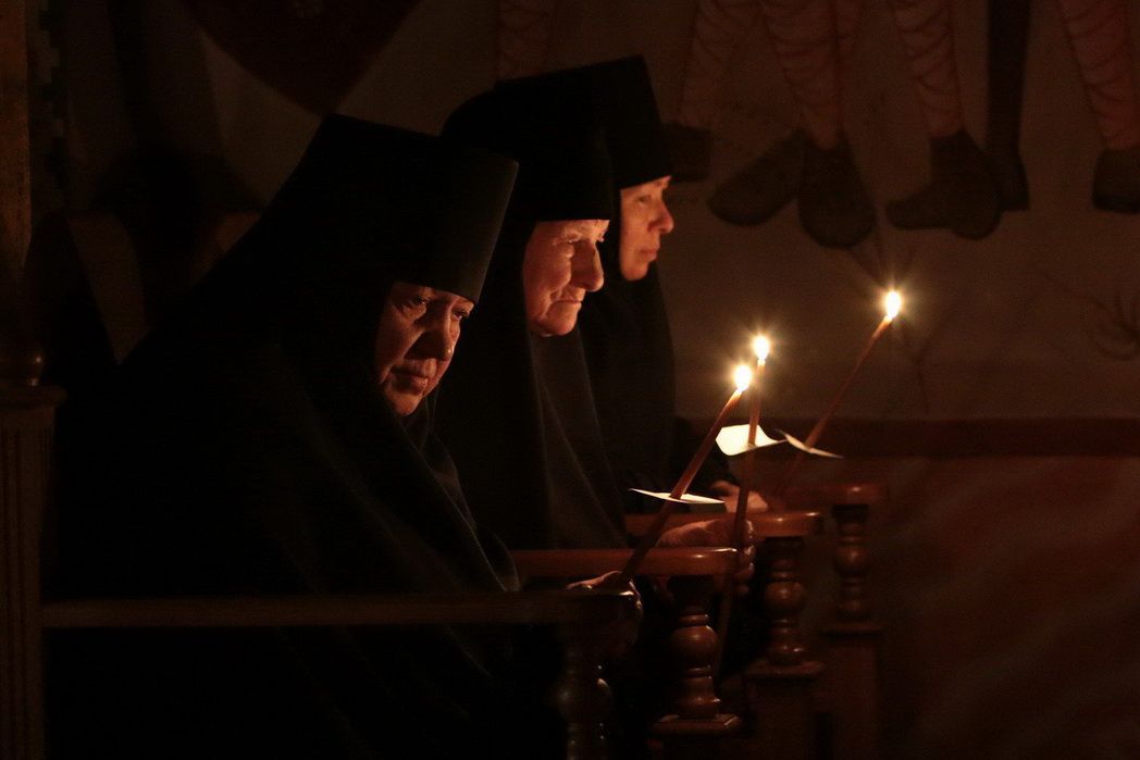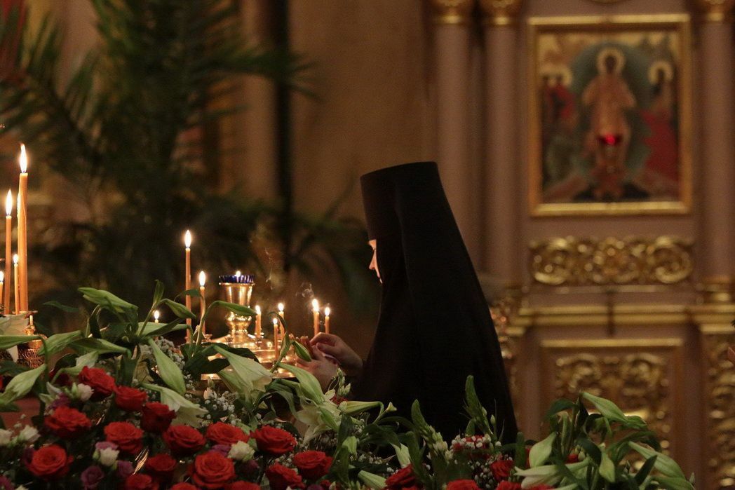 «Как оказалось, самое страшное в Новодевичьем монастыре – это ходить со свечой. Во время богослужения зажженная свеча на высоком подсвечнике, стоящем на полу, символизирует собой пророка Иоанна Предтечу, поэтому сестра-церковница должна идти со свечой перед символизирующем Спасителя Евангелием, которое выносят из алтаря священнослужители. Свеча с подсвечником не очень тяжелая, но поднимать ее не всегда удобно из-за окаймляющих подсвечник украшений из живых цветов.