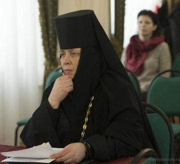 Одна из наиважнейших тем на многих монашеских форумах, которая никогда не утратит своей актуальности, поскольку должна быть глубоко осмыслена, пропущена через сердце иноком или монахом любой эпохи, – это тема монашеских обетов. Именно ей был посвящен доклад «Монашеские обеты и их значение для формирования здоровой личности», прочитанный первой игуменией новой России, как тепло и с полным на то основанием называют настоятельницу Свято-Введенского Толгского женского монастыря матушку Варвару (Третьяк), памятуя, что 30 лет назад она возглавила обитель – сплошные руины! – на Толге, ставшую первым открытым после советского безвременья женским монастырем в нашей стране. Докладчица подчеркнула, что принесение трех обетов – девства, нестяжания и послушания – основывается на отречении (по-гречески: ἀποταγή) от мира, которое является важной отправной точкой монашеской жизни. Она подробно остановилась на вопросах, которые задаются во время чина пострижения в монашество, и ответах постригаемого в ангельский образ, призванных показать, готов ли он к внутренней, сокровенной борьбе против мира, плоти и дьявола или же лицемерит перед собой и Богом. Три основных страсти, порождающие все прочие – властолюбие, сребролюбие, сластолюбие, – влекут человека от Бога к земле, привязывают его к чувственности, делают дух дряблым, а сердце – лишенным любви к Богу, что в итоге становится источником всех зол, болезней духовных и телесных. Но у монашествующих есть против всего этого мощное оружие: верность данным ими обетам. Как весомое подтверждение в докладе приводились изречения святых отцов и подвижников благочестия, опытным путем убедившихся в силе такого оружия. И матушке-молитвеннице, матушке-созидательнице так хотелось донести их мудрые мысли до участников круглого стола – с такой энергией и убежденностью она их зачитывала, что казалось: это звучат голоса из вечности, призывающие не малодушничать, не унывать, а стоять перед лицом Божиим до последнего своего вздоха, каковы бы ни были обстоятельства и каким бы сильным ни был напор враждебных сил...