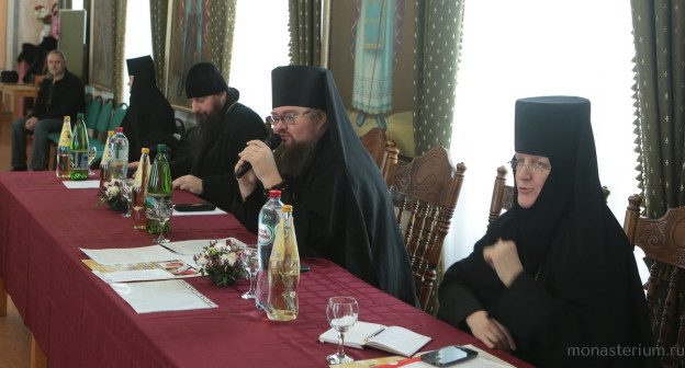 Роли духовных руководителей и их первых помощников в организации монашеской жизни в монастыре уделялось большое внимание и в других докладах. Так гость из соседней епархии – игумен Николай (Шишкин), магистр богословия проректор по научной работе Ярославской духовной семинарии, благочинный Угличского района Переславской епархии – в своем докладе «Древние иноческие уставы в современной жизни Церкви» привел цитату, где ни одно слово, ни одно определение не утратило веса в наши дни: «Он должен быть смиренномудр, истиннолюбив и правдолюбив, милосерд и сострадателен, простосердечен и чужд всякого лукавства, строг к себе и во всем воздержен, постоянен и тверд, как в суждениях своих, так и в делах, терпелив и мужествен, и скорее готов подъять смерть, нежели отступить от осознанной правды Божией...» Эти бессмертные слова-наставления взяты из устава Тавеннисиотских монастырей, устроенных преподобным Пахомием и преподобным Феодором в IV веке. Благодаря великому ученому-богослову святителю Феофану (Затворнику), совершившему свой грандиозный труд по собиранию древних иноческих уставов в XIX веке, они стали известны и современным представителям монашества. Что касается самих древних иноческих уставов, переведенных, откомментированных и объединенных в одну книгу Святителем «Древние иноческие уставы», то в предисловии к этому изданию говорится: они дают возможность удостовериться, во-первых, в том, что иночество – не новость какая недавняя и произвольная, а также древне, как само христианство, и требуется самым духом христианства, которое чает видеть себя явленным в нем в совершеннейшем виде. Во-вторых: наш образ иночествования согласен с первоначальным и с тем, в каком оно было держимо в Церкви во все время – от начала до нас.