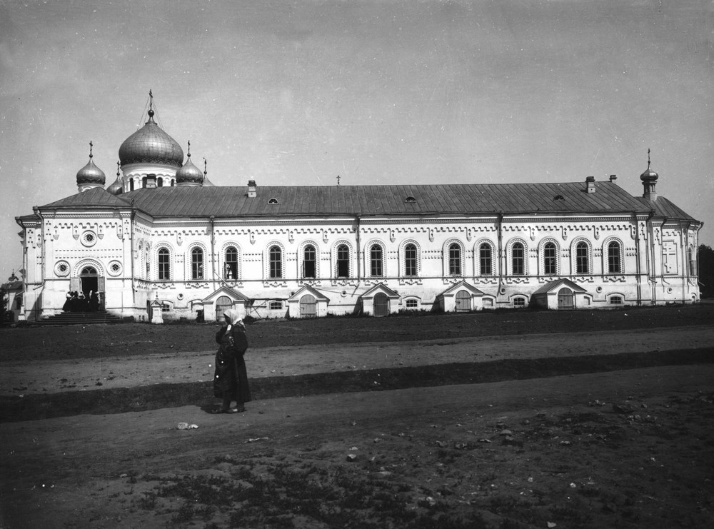С грустью покинули Саровскую пустынь и отправились в городок, где построены бараки для богомольцев. В часовне епископ Иннокентий отслужил короткий молебен, и мы поехали дальше лесом. Погода была жаркая, и дул сильнейший попутный ветер, гнавший пыль с нами. В 10 с 1/2 приехали в Дивеевский Женский монастырь. В домовой церкви настоятельницы матери Марии отслушали обедню, затем все сели завтракать, а Аликс и Я отправились к Прасковье Ивановне (блаженной). Любопытное было свидание с нею. Затем мы оба поели, а мама с другими посетили ее. Осмотрели церковь Преображения, где сохраняются вещи святого Серафима, его келию, типографию и живописную школу сестер.