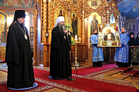 После посещения келии матушки Александры мы направились к домику, где жила блаженная Пелагия. С трепетным чувством переступили мы его порог. Полутемный коридор, из которого тут же дверь налево ведет в небольшую прихожую. Здесь, возле печки, сидя на коврике, проводила почти все ночи напролет блаженная. Из прихожей вело трое дверей в отдельные келии, в одной из которых она и скончалась. Здесь стоит деревянная кровать, покрытая одеялом. В углу висят образа, а под ними на столике лежит толстая железная цепь, которой некогда была прикована страдалица своим мужем к стене. Монахиня, читавшая Псалтирь, оторвавшись на минуту, сняла цепь со стола и дала нам приложиться к ней, а затем, к великой нашей радости, отрезала от одеяла два небольших кусочка на молитвенную память о дивной угоднице Божией.