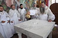 Из Ближней пустынки надо идти в Дальнюю, то есть в Преображенскую церковь монастырского кладбища, в которой алтарь сделан из сруба Дальней пустынки. По восточной наружной стене алтаря расположены витрины, в которых хранится одежда старца. Едва ли есть храм оригинальнее этого по простоте и расположению: несколько икон в иконостасе, стены пустынки без всякой отделки, во всей своей неприкосновенности. В алтаре, за престолом, у Горнего места, лежит камень, скорее обломок того камня, на котором, стоя на коленях, с молитвой мытаря на устах, он молился подряд тысячу ночей. Там же лежит отрубок с корнем того дерева, которое по молитве батюшки преклонилось в сторону Дивеевской обители в обличение гонителей его усердия к дивеевским сестрам и неустанных его забот о них. В алтаре в шкатулочке, завернутые в чистое полотенце, лежат Евангелие старца и его крест.