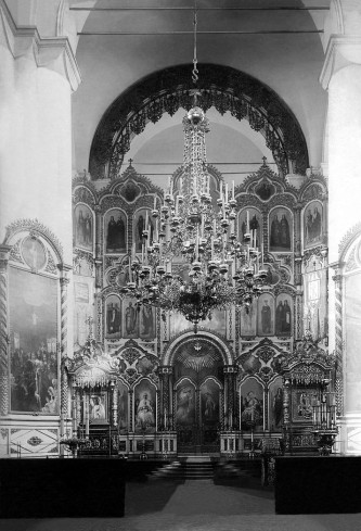 С нашим приближением храм все рос, и вскоре перед нами предстало грандиозное сооружение, которое своими размерами и красотой архитектуры казалось необычным в нашем крае, пока единственное в своем роде. Поднявшись по ступеням высокой паперти, мы вошли в него. Прекрасный, полный света, украшенный удивительной дивеевской живописью, собор поражал своей одухотворенной красотой. Мы уже не замечали его обширности: настолько гармонировали между собою размеры, которые скрадывались еще тянувшимися вдоль стен широкими хорами. На последние входят со светлой, отделенной от храма паперти по двум расходящимся лестницам, украшенным легкою металлическою решеткой. Паркетный пол хоров и небольшие изящные алтари на той и другой стороне еще более смягчают общую внушительность собора. Но и присмотревшись ко всей обстановке его, вскоре же почувствуешь, что в устройстве этого храма участвовал мягкий художественный вкус просвещенной женщины, которая создавала место молитвы для себе подобных.