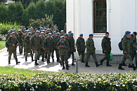 В самой глубине монастыря расположено дивеевское монастырское кладбище. Оно окружено невысокой оградой с каменными столбами и деревянными между ними просветами, за которой непосредственно прилежит уже и Канавка, огибая его с трех сторон. При самом входе в него стоит небольшая деревянная церковка в честь Преображения Господня. Кладбище поразило меня своей суровой простотой и в то же время удивительным порядком и чистотой. Сплошным ковром зелени одеты были чуть возвышающиеся холмики над могилками. Кое-где из травы выглядывали неизвестно как попавшие сюда лесные колокольчики и ромашки.
