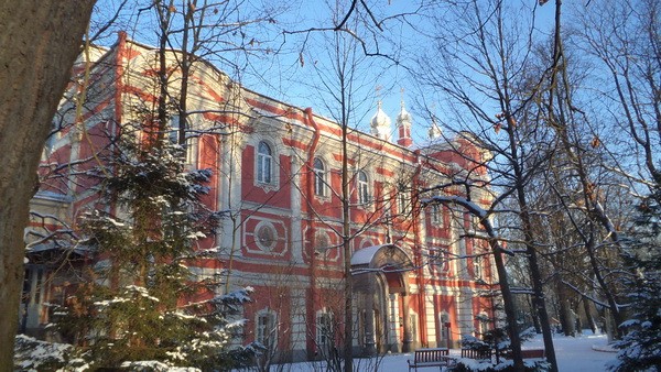 Архимандрит Игнатий (Малышев) в последние годы жизни много сил и времени уделял благотворительности вне монастырских стен. Благотворительным актом, последовавшим со стороны современной обители, можно назвать тот факт, что когда уникальная в своем роде православная гимназия осталась без помещения, то духовное руководство монастыря предложило ей занять один из монастырских корпусов. Конечно, его надо было привести в порядок, потому что после передачи здания монастырю школой МВД выглядело оно весьма плачевно. Капитальный ремонт пришлось делать. И вот уже восемь лет гимназия «Горница» размещается на территории Приморской пустыни в Стрельне. Ее слава как «образовательного чуда» давно вышла за пределы Санкт-Петербурга и области. В гимназии сложился крепкий коллектив православных педагогов с бессменным директором Галиной Николаевной Стремяковой, и среди преподавателей, что особенно ценно при раздельном обучении мальчиков и девочек, немало мужчин, преданных профессии. К тому же сюда охотно возвращаются выпускники, получившие дипломы о педагогическом образовании. Что касается школьников, то они, приученные усердно и с энтузиазмом трудиться с начальных классов, не сходят с дистанции и в старших классах. Кроме того, как отмечают частые гости из разных мест (в их числе и заинтересованные процессом воспитания священнослужители), ребята не зажаты, у «них свет в глазах». Педагоги гимназии стараются развить способности и задатки каждого. О «почти массовой» любви к рисованию говорят мастерски написанные картины, что украшают стены коридора. Девочки любят заниматься рукоделием и выпечкой архангельских козуль – расписных пряников. Мальчики – резьбой по дереву, в чем тоже, по всеобщему мнению, достигли если не совершенства, то сильно преуспели. Девочки вяжут для монахов теплые носки, мальчики на уроках труда сбивают деревянные ящики, нужные в монастырском хозяйстве. Все хотят помочь монастырю, давшему им приют, помочь хотя бы в чем-то. В том числе и в садово-огородных работах. Вообще в «Горнице», окормляемой Троице-Сергиевой Приморской пустынью, на сегодняшний день учится 250 человек. Духовник в гимназии – иеромонах Филарет (Коноплев). Он-то и приводит в гимназию, ставшую в какой-то степени и его детищем, многих людей, заинтересованных в этом замечательном опыте учебно-воспитательного процесса. «Без помощи нашего активного батюшки мы бы не имели связи со всей Россией», – говорит директор. Монашествующие преподают в гимназии Основы православной культуры. Учебный день в «Горнице» начинается в 8.30 с молебна. В 9.00 дети идут в классы. Раз в месяц в большом Сергиевском храме проводятся школьные Литургии. Дети сами поют, мальчики прислуживают в алтаре. Вся школа в этот день причащается. А так многие из учеников бывают на воскресных богослужениях вместе со своими родителями, прихожанами монастыря.