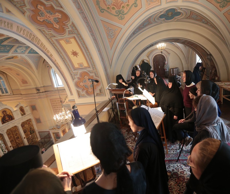 Радость в день юбилея древней обители вызвал приезд в монастырь Предстоятеля нашей Церкви и совершение им праздничной Божественной литургии в соборе Усекновения главы Иоанна Предтечи. Радость для каждого храма – много причастников, а здесь их было море! Награждение монашествующих и помощников обители высокими Церковными наградами – тоже какая радость! Порадовало молящихся и замечательное пение сестер и певчих-мирянок. К слову, на просторных хорах, расположенных почти что под самым куполом, как раз над головами певчих есть две современные фрески. Одна – с изображением величайшего радостного события: Крещения Спасителя в реке Иордан Его Предтечей. Вторая изображает событие скорбное: Усекновение главы Проповедника покаяния, который не боялся обличать нечестивых людей, фарисеев, начальствующих и даже самого царя. Для певчих эти фрески – постоянное напоминание, в каком они месте находятся и насколько благоговейно должны исполнять свое послушание.