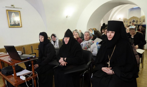 ***В заключение Светлана Зотова и Светлана Сергеева, члены Досифеевской группы, познакомили участников конференции с отчетом о поэтапной деятельности на тех направлениях, которые были избраны энтузиастами. Они рассказали о находках, что сподвигли определенный круг людей к дальнейшей исследовательской работе, соединившей мирян и сестер обители – монахиню Тавифу (Исаеву) и монахиню Анувию (Виноградову). (Их вдохновляющую и координирующую роль миряне чувствуют постоянно). Теме сбора материалов для подготовки к канонизации известной подвижницы благочестия был посвящен небольшой слайд-фильм, сделанный с такой любовью и на таком хорошем профессиональном уровне, что хочется низко поклониться его создателям. Одна картинка с краткой информацией сменяет другую: заседания рабочих групп в монастыре и работа в разных архивах; панихиды по матушке Досифее в Новоспасском монастыре и поездки в места, связанные с сестрами-предшественницами обители на Китай-городе. Образно говоря, в фильме проложены маршруты духовной географии. А особую атмосферу при его просмотре создает музыка ирландско-норвежского дуэта Secret Garden, навевающая мысли о вечности.