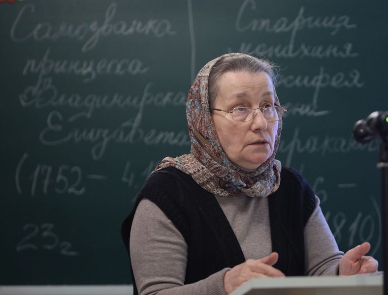 Как на небольшой учебной доске мать Феонилла схематично разделила мелом имена и годы жизни двух личностей – самозванки и старицы, так и в своем докладе она провела четкую границу между ними, по опыту послушания экскурсовода зная, что в умах несведущих людей царит историческая путаница. Первой, именовавшей себя принцессой Владимирской, у которой были и другие имена (в том числе и княжна Тараканова, якобы дочь императрицы Елизаветы Петровны и графа Разумовского, а значит – претендентка на Российский престол!), посвящена масса художественных произведений. Про другую – тайну рождения принцессы Августы Таракановой, ее насильственное заточение в Ивановской обители по распоряжению Екатерины II и преображение души через избранный невольницей путь полного доверия к Богу – написаны жизнеописания или жития. Именно этим житиям докладчица уделила основное внимание. Она рассказала о разных трудах того времени, касающихся старицы Досифеи. Но совершенно замечательный труд, где впервые появились ссылки на источники, составил известный историограф протоиерей Василий Руднев. Настоятель храма Святой Троицы на Шаболовке, позже назначенный настоятелем Данилова монастыря и постриженный в монашество с именем Тихон. Отец Василий буквально вернул сестрам восстанавливавшейся в XIX веке обители ее историю. А уже в конце XX века священник Афанасий Гумеров – ныне архимандрит Иов, насельник Сретенского монастыря в столице – по благословению священноначалия составил житие старицы – и тоже богатое ссылками на источники. Вообще батюшка, наш современник, на стыке столетий по поручению Патриарха и Комиссии по канонизации святых подготовил целый ряд материалов к канонизации многих святых. И вот уже прославлены блаженная Матрона Московская, святитель Макарий (Невский), преподобный Аристоклий, старец Афонский и Московский. Подготовлен материал к канонизации Великого князя Сергия Александровича, который упокоен вместе с монахиней Досифеей в храме-усыпальнице преподобного Романа Сладкопевца в Новоспасском монастыре в Москве.