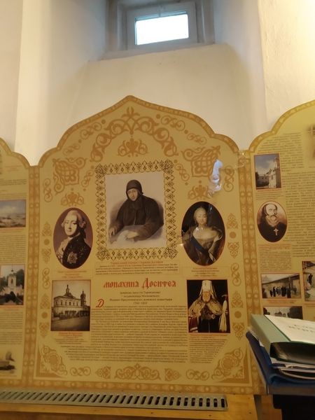 Прозвучало еще одно важное сообщение – из недалекого прошлого. По благословению настоятельницы обители игумении Афанасии (Грошевой), находящейся сейчас на покое, летом 2008 года докладчица встретилась с наместником Новоспасского монастыря архиепископом Алексием (Фроловым). Тема встречи – разговор о возможности прославления старицы Досифеи. Как наместник монастыря он в свое время инициировал процесс обретения мощей подвижницы и впоследствии благословил к той исторической надписи, что сохранилась на надгробии и была воспроизведена на надгробии в усыпальнице («Под сим камнем положено тело усопшия о Господе монахини Досифеи обители Ивановского монастыря, подвизавшейся о Христе Иисусе в монашестве 25 лет и скончавшейся февраля 4 дня 1810 года») добавить: принцесса Августа Тараканова. Также приснопамятный владыка Алексий решил оставить могилу матушки Досифеи в усыпальнице бояр Романовых не зацементированной (как и могилу Великого князя Сергия Александровича) – на случай их прославления...