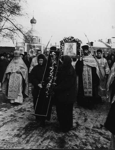 Летопись новой истории монастыря полнилась событиями. Первая Литургия в первом освобожденном арендаторами храме – надвратном, в честь Нерукотворного образа Спасителя. Первые иноческие и монашеские постриги. 25 ноября 1999 года великая веха – торжественное возвращение в монастырь чудотворной иконы Пресвятой Богородицы «Милостивой» из Ильинского храма. Многолюдный крестный ход, возглавляемый сонмом духовенства, прошел по Остоженке и был встречен во вратах Святейшим Патриархом, – словно воскресли забытые картины жизни древней столицы...