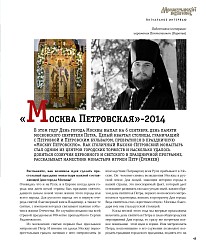 6 сентября 2014 года в Москве впервые прошел праздник «День святителя Петра – Москва Петровская». 867-й день рождения столицы совпал с днем памяти святителя Петра, митрополита Киевского, Московского и всея Руси. Одновременно отмечалось 500-летие собора святителя Петра – древнейшего из сохранившихся в Высоко-Петровской обители. Почему объединение этих памятных дней в один праздник – событие радостное и исторически справедливое – в нашем репортаже