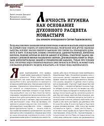 Когда мы говорим о значении личности игумена в жизни монастыря, будет ошибкой на первый план ставить его интеллектуальные, физические или другие подобные качества, которые обычно являются важными при приеме на руководящую должность в миру. В монастыре, помимо строительных, административных, житейских вопросов, решение которых во многом зависит от игумена, существуют задачи, связанные с духовной жизнью насельников обители. Духовная жизнь лежит за пределами интеллектуальных знаний и управленческих навыков. Только при условии того, что игумен будет стремиться раскрыть свою личность во Христе, он может стать основанием духовного расцвета монастыря, а не только лишь материального.
