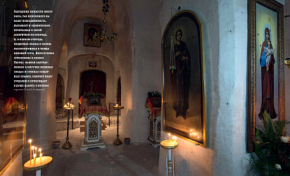 Ощущение близости иного мира, так непохожего на нашу повседневность, вызывает и удивительно прекрасная в своей аскетичности природа, и, в первую очередь, пещерные храмы и келии, расположенные в толще меловой горы. Неотступное стремление к своему Творцу, навеки запечатленное в могучих меловых сводах и столпах пещерных храмов, смиряет нашу гордыню и пробуждает в душе память о вечном.