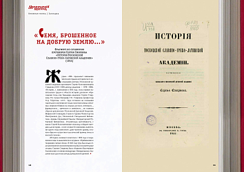 Журнал «МВ» предлагает вниманию читателей отрывок исторического исследования ректора Московской духовной академии протоиерея Сергия Константиновича Смирнова (1818–1889; ректор академии – 1878–1886). «История…», написанная в 1855 году, стала первым капитальным трудом в области истории духовного образования тогда еще бакалавра академии Сергия Смирнова. По словам биографа С.К. Смирнова профессора М.Д. Муретова, «этот… труд составлен на основании тщательного изучения не только многочисленных печатных первоисточников на языках русском, немецком…, французском…, греческом и латинском…, но главным образом рукописных: Московской Духовной Академии, Вифанской Семинарии, Главного Архива Министерства Иностранных Дел, Московской Синодальной Библиотеки, Архива Оружейной Палаты, Императорской Публичной Библиотеки… Изумительна настойчивость, с какою Сергей Константинович отовсюду собирает материал для истории... он не оставил без внимания, кажется, ни одного тогда известного, даже частного архива, и таким образом осуществил классический пример пчелы в высшей степени».е частного архива, и таким образом осуществил классический пример пчелы в высшей степени».