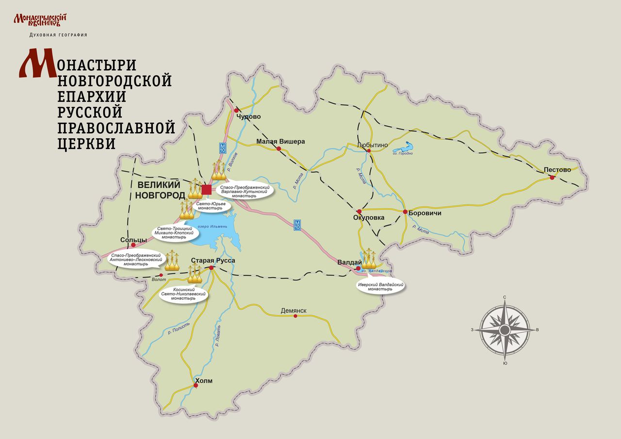 Издалека Великий Новгород был похож на огромный монастырь — город-монастырь. Путешественник, глядя на Новгород, невольно задавался вопросом: живут ли там, кроме монахов, мирские люди?Кроме того, у историков, при разговоре об устройстве древнего Новгорода, часто можно встретить понятие новгородская теократия. И действительно, наряду с архиепископом Новгородским огромную роль в духовной, общественной и экономической жизни Новгорода играло монашество. Именно монастыри были самыми богатыми землевладельцами, которые оказывали влияние на все сферы городской жизни.