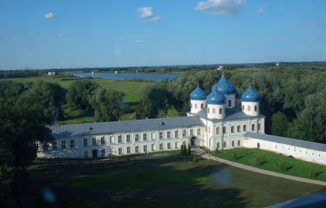 Древний юрьев Юрьев монастырь находится в южных окрестностях Новгорода, у истока Волхова из озера Ильмень и располагается на возвышенной местности. Здесь сходились многие важнейшие торговые пути. в их числе и знаменитый путь «из варяг в греки». в центре обители, на вершине холма, поставлен Георгиевский собор, который на протяжении многих столетий являлся архитектурной доминантой ансамбля монастыря. Монастырь с древним собором, выделяющимся высотой и выразительным силуэтом, завораживал и восхищал всех, кто когда-либо видел его. Архидиакон Антиохийского патриарха Макария Павел Алеппский, посетив Новгород в XVII веке, написал восторженные строки о монастыре и его главном храме: «Монастырь Святого Георгия ‒ величественный, красивый, и церковь его ‒ благолепная, большая, просторная, радующая душу. С крыши открывается удивительный вид на все окрестности». о нем наш рассказ.