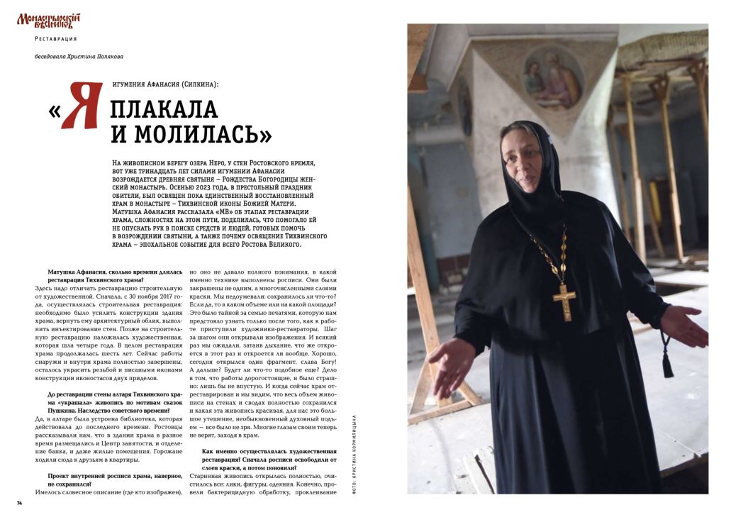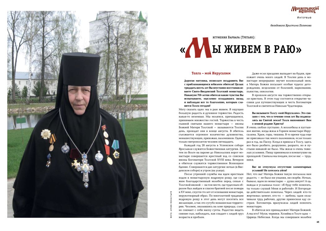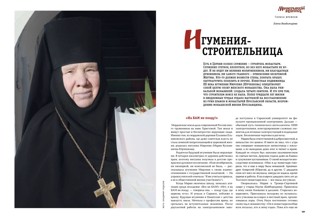 – материал об игумении-строительнице, восстановившей четыре монастыря Ярославщины;