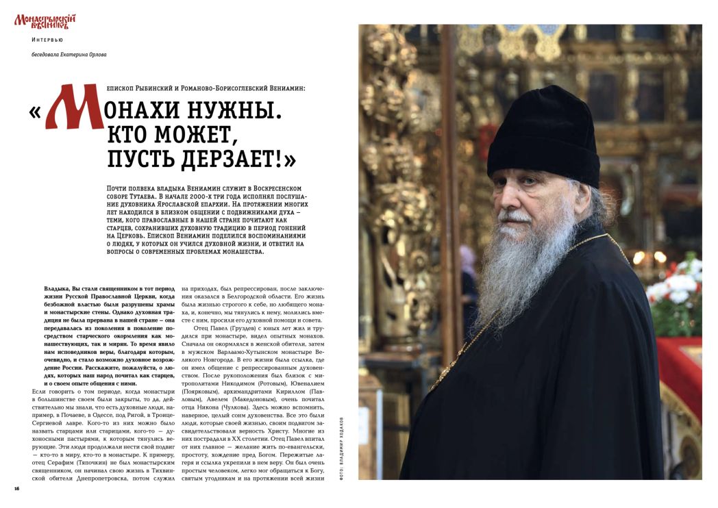 Епископ Рыбинский и Романово-Борисоглебский Вениамин: «Монахи нужны. Кто может, пусть дерзает!»