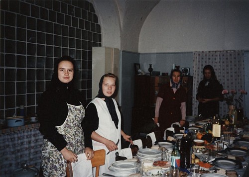 Когда мы начали служить, люди постепенно узнали, что монастырь открывается, и стали помогать: кто стулья, кто кровати, кто столы, кто посуду, кто продукты приносил. Утром встанешь – а у двери пакетик морковки лежит, или картошечка.