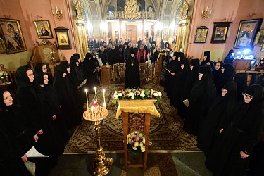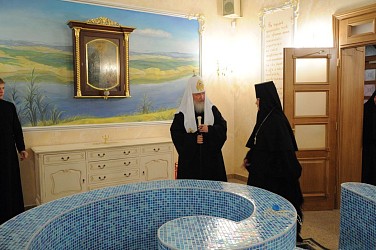 Святейший Владыка со знанием дела интересуется, как идут дела в монастыре и на подворьях, дает мудрые советы, с любовью благословляет каждую сестру, говорит поучительные для всех насельниц слова за общей трапезой.