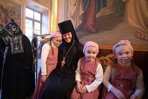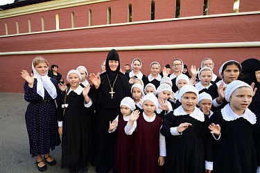 Вскоре после этого в монастырь стали привозить первых воспитанниц. Приютские дети очень сложные, к ним нужен особый подход, внимание и любовь. Нужно постоянно с ними заниматься, но другого пути у меня нет. Так благословляет Господь. Мы даем всем детям одинаковое воспитание и образование в духе православной традиции. Каждый день в приюте начинается и заканчивается общей молитвой, дети молятся до и после еды, бывают в храме на службе, где сами поют, читают; регулярно исповедуются, причащаются. Учатся в православной гимназии, там им преподают Закон Божий, литургику. Они получают музыкальное образование: занимаются вокалом, играют на музыкальных инструментах, готовят выступления к праздникам обители. Также выступают на фестивалях в концертном зале Зарядье.