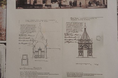 Воссоздан по историческим фотографиям на месте часовни, разрушенной в советские годы.