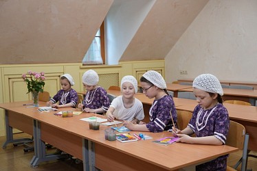 Поскольку классы у нас небольшие, то обучение почти индивидуальное. На уроках труда девочки овладевают навыками кройки и шитья, учатся готовить, вести хозяйство. В монастыре несут посильные послушания – в трапезной накрывают и убирают за собой столы, в храме церковничают.