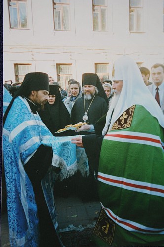 Этот приезд Патриарха стал очень важным для нашей обители. За месяц до этого, в сентябре 1996 года, московские власти выпустили Постановление о передаче всех зданий и земли монастырю. Но фактически ничего не изменилось – арендаторы никак не уходили. Патриарх знал об этом, и поэтому он заехал в монастырь перед всенощной 13 октября 1996 года и отслужил молебен Покрову Матери Божией.