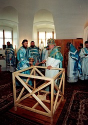 Я по ночам шила облачение для престола, завесы для алтаря, и за десять дней мы к освящению все приготовили. 13 октября 1995 года уже освятили малым иерейским чином придел в честь преподобного Нила Столобенского (там сейчас покоятся мощи блаженной Матроны Московской). Первый молебен совершил иеромонах Евлогий (Стручалин) – ныне он насельник Соловецкого монастыря, скитоначальник Голгофо-Распятского скита на острове Анзер. Затем мы отслужили всенощное бдение, а в сам день Покрова были совершены Божественная литургия и крестный ход вокруг храма – впервые после почти 70-летнего перерыва (монастырь был закрыт в 1929 году).