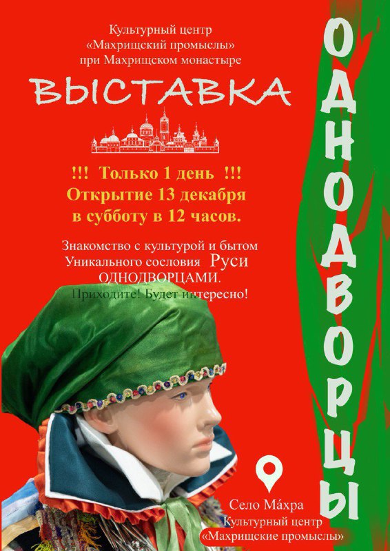 13 декабря 2025 года в культурном центре «Махрищские промыслы» при Свято-Троицком Стефано-Махрищском ставропигиальном женском монастыре состоится открытие уникальной выставки-экскурсии «Однодворцы – 7 русских историй».