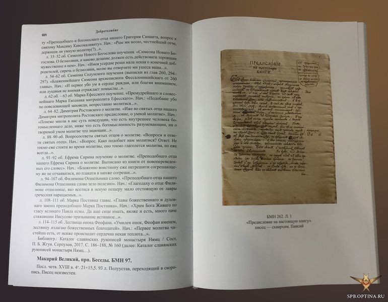 В конце 2019 года в Москве, в рамках проекта «Монашество в истории» была представлена публикация, подготовленная коллективом петербургских исследователей во главе с П.Б. Жгуном совместно с Петербургским Подворьем Оптиной пустыни: «Добротолюбие в переводе преподобного Паисия (Величковского)». Поскольку через короткое время после выхода в свет этого двухтомного издания стали раздаваться критические отклики, обозначилась определенная проблема: налицо определенное непонимание особенностей явления, обычно называемого в греческой историографии «филокализмом». Наши современники подчас не вполне представляют себе традицию византийских аскетических сборников, поствизантийское ее продолжение, и наконец – какое место в этой традиции занимали аналогичные святоотеческие антологии, изданные типографским способом или существовавшие в рукописях начиная с 1760-х годов (в их числе и знаменитая «Филокалия» – греческое «Добротолюбие», изданное в Венеции в 1782 году).