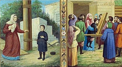 Преподобный Серафим Саровский, великий подвижник Русской Церкви, родился 19 июля 1754 года. Родители преподобного, Исидор и Агафия Мошнины, были жителями Курска. Исидор Иванович брал подряды на строительство зданий, а в конце жизни начал постройку собор, но скончался до завершения работ. Младший сын Прохор остался на попечении матери, воспитавшей в сыне глубокую веру. После смерти мужа Агафия Фотиевна, продолжавшая постройку собора, взяла однажды туда с собой Прохора, который, оступившись, упал с колокольни вниз. Господь сохранил жизнь будущего светильника Церкви: испуганная мать, спустившись вниз, нашла сына невредимым.