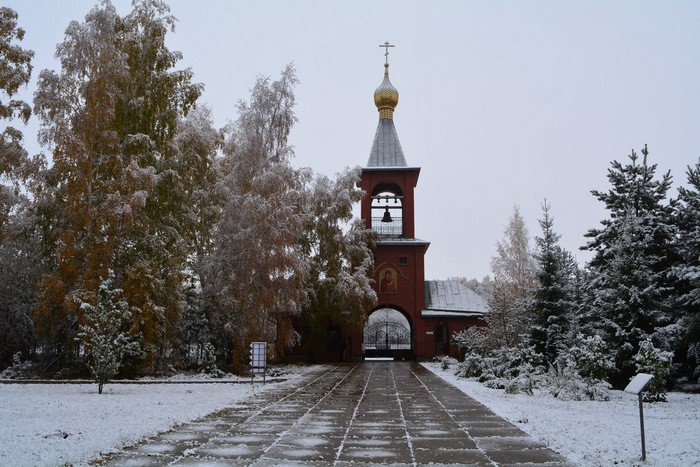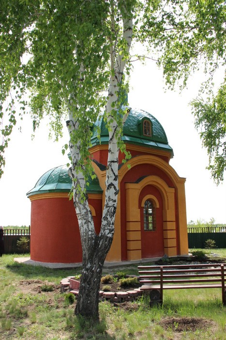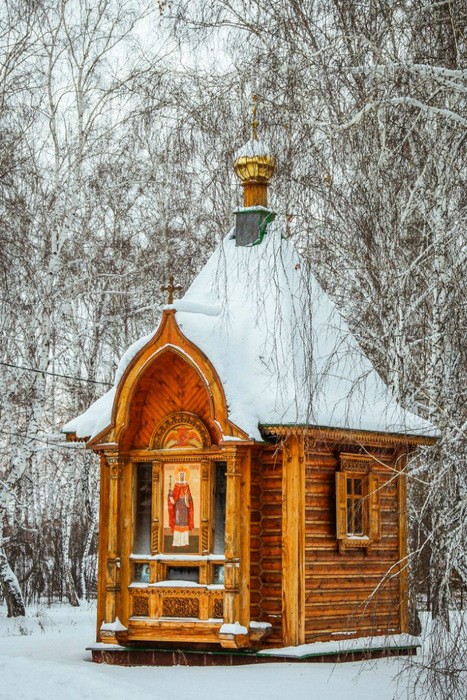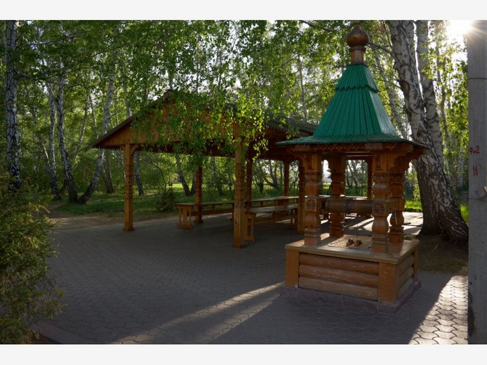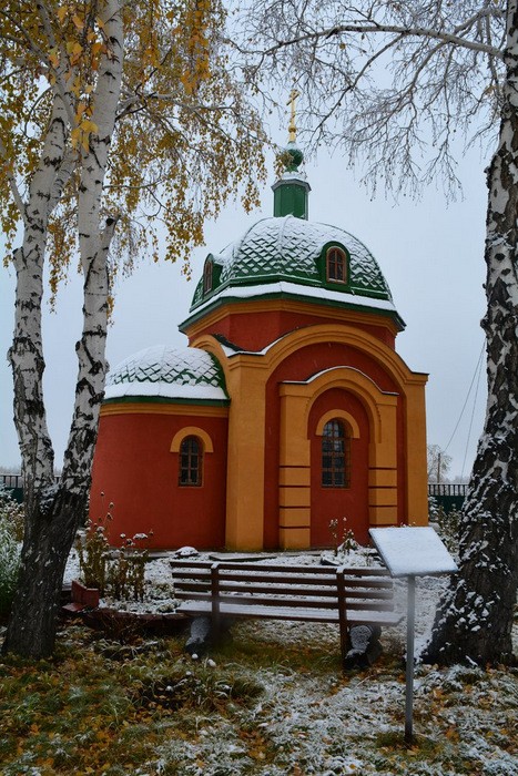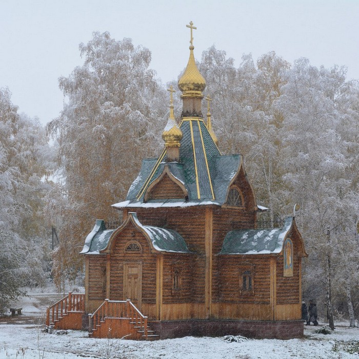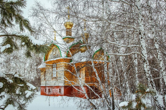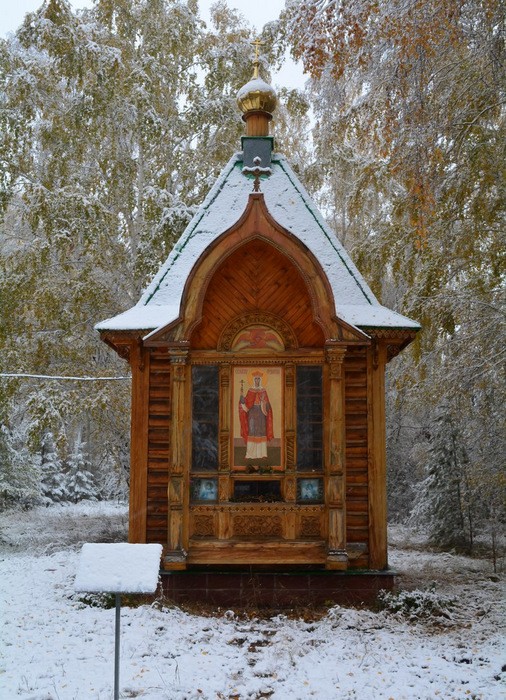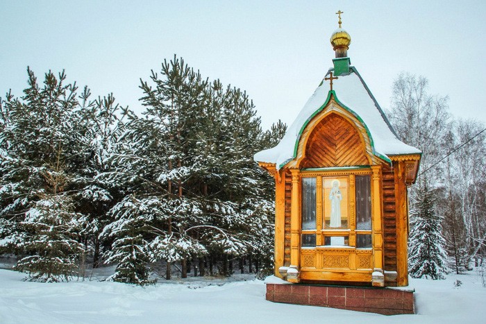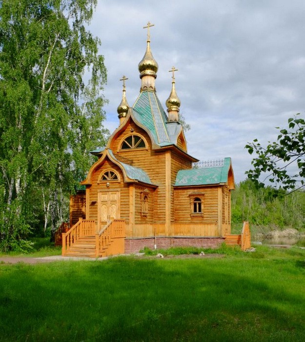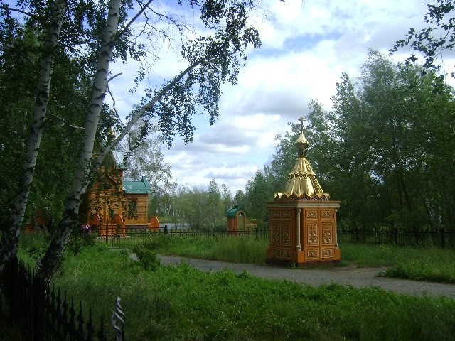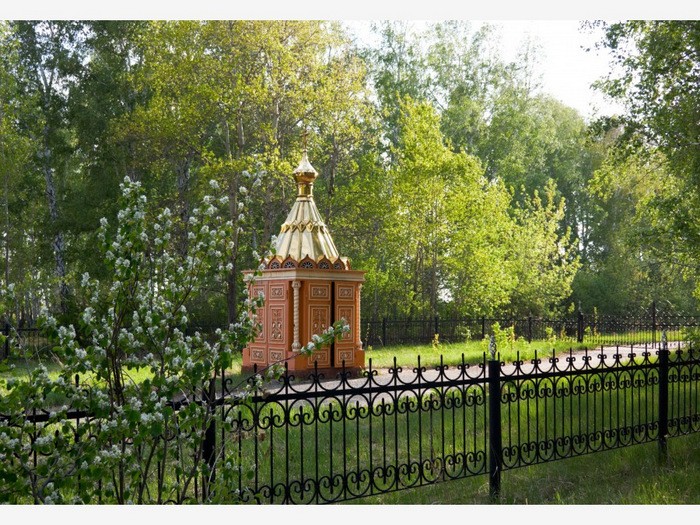 Недалеко от источника еще один замечательный храм во имя мучениц Веры, Надежды, Любви и матери их Софии — настоящая жемчужина деревянного храмового зодчества. Нижний придел храма освящен во имя прославленного святителя Сильвестра — первого новомученика омского.