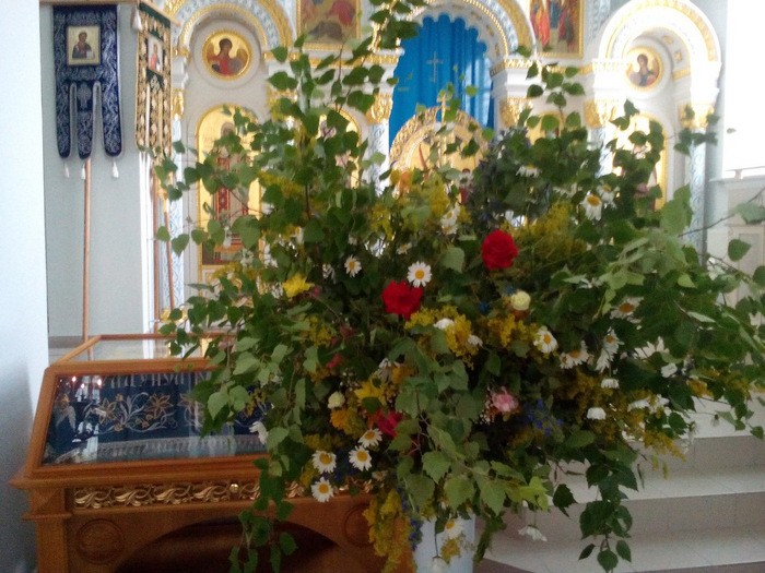Правый придел освящен в честь Царственных жен мучениц, левый — во имя новомучеников Омских: Михаила, Иоанна, Николая, и, конечно же, святителя Сильвестра.