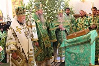 Верхний холодный во имя Живоначальной Троицы освящен в 1754 г. в скором времени была разобрана старая деревянная церковь во имя преподобных Зосимы и Савватия, Соловецких чудотворцев, а также ветхая деревянная колокольня. В память об этом образ преп. Зосимы и Савватия теперь находится в иконостасе нижнего Покровского храма (ранее он назывался Богоявленским). Теплая церковь в нижнем этаже каменного Троицкого храма в честь Богоявления Господня была устроена в 1767 г. В это же время пристроена новая каменная трапеза и колокольня. Впоследствии Богоявленский храм упразднен. После пожара в 1775 г. колокольня с двумя колоколами и боевыми часами сгорела, получили повреждения и другие монастырские постройки. Перестройка и обновление соборного храма началась только в 1805 г. во время настоятельства архим. Авраамия (Соловьева). За три года был устроен новый иконостас в три яруса с колоннами и богатой резьбой, вызолоченной на полименте червонным золотом. Началось строительство новой трехъярусной колокольни. В 1814 г. с западной стороны храма устроен придел во имя свт. Димитрия Ростовского. Летом 1906 г. из-за сильной жары и засухи начались пожары. В монастыре сгорели церкви, колокольня, корпуса и надворные постройки. К 1911 г. трудами о.Гавриила и братии восстановлен весь комплекс монастырских построек.