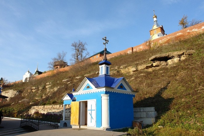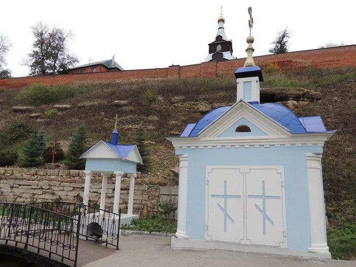 В 1841 году с южной стороны монастыря был устроен спуск к святому источнику в виде широкой лестницы с перилами и начата постройка каменной колокольни. К 1861 году постройка трехъярусной колокольни была завершена. На звоннице было 10 колоколов, самый крупный из которых весил около 3 тонн.