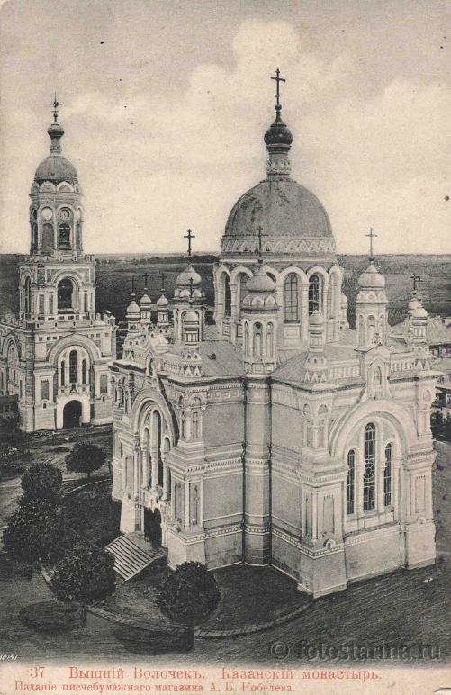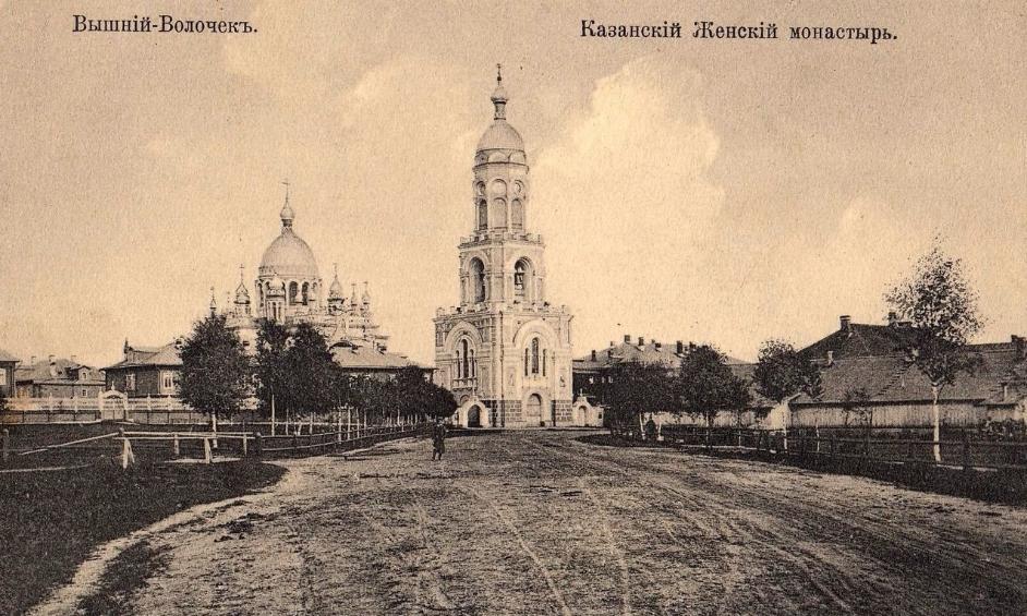 Казанский женский монастырь в городе Вышний Волочек основан на месте явления чудотворной Казанской иконы Божией Матери, на протяжении нескольких веков являвшейся великой святыней вышневолоцкой земли. На месте ее явления, у святого источника, была воздвигнута для ее пребывания часовня, а впоследствии – храм с колокольней, где чудотворный образ находился вплоть до разорения обители после революции, привлекая к себе множество паломников и богомольцев со всей Руси.