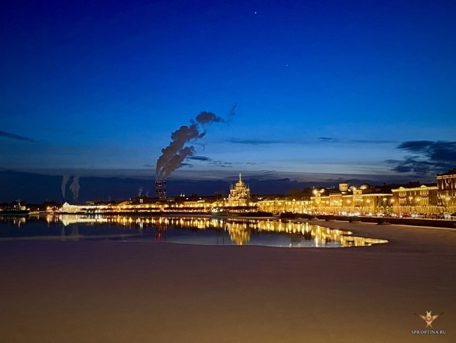 С Благовещенского моста, что ведёт на Васильевский остров из центра Петербурга, хорошо виден православный храм Успения Пресвятой Богородицы.