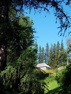 «Это прелестный уголок, затерянный среди лесистых гор в зеленой котловине. Мы взошли на балкон, устроенный на кровле часовни. Отсюда открывается пейзаж, так и просящийся на полотно. Прямо перед нами, одни выше других, вздымались гребни поросших соснами гор и за ними - синевато-туманные полосы таких же далей. Все навевает на душу мирное спокойствие… Изредка взгляд встречал небольшую полянку. На одной ясно рисовался силуэт отдыхавшего оленя… Не хотелось верить, что мы на Крайнем Севере. И воздух, и небо, и земля - все напоминало юг Швейцарии… Садовник-монах из крестьян предложил нам посмотреть оранжереи и парники. Тут росли арбузы, дыни, огурцы и персики. Разумеется, все это в парниках… Оранжереи с цветами прелестны. В распределении клумб обнаруживается вкус и знание дела».