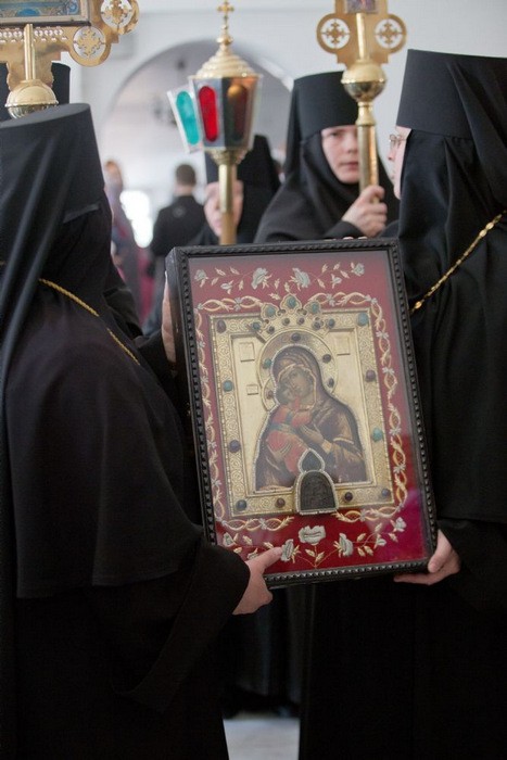 Стечение народа в монастыре происходило на главные престольные праздники обители — день Сретения Владимирской иконы Божией Матери и день обретения чудотворного образа . В день Владимирской иконы в монастырь приходило из Царевококшайска, окрестных деревень около трех тысяч богомольцев. Приходили пешком и приезжали из Яранского и Уржумского уездов Вятской губернии. В этот день с раннего утра и до вечера в храме и на святом ключе недалеко от обители священники едва успевали служить молебны. Из храма совершался крестный ход на ключ. Паломники окроплялись cвятой водой.